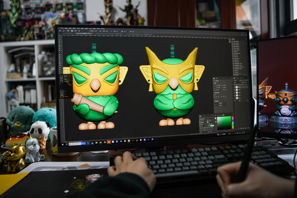 2025年3月1日,文創產品策劃運營師曾舟在位于四川成都的辦公室內完善文創產品細節。他以三星堆青銅神樹、青銅縱目面具、青銅獸面等文物為創作藍本,結合潮玩元素設計的文創作品廣受歡迎。“我想做的不是玩具快消品,而是有內容、有溫度、有意義的文化IP,讓年輕一代隨手摸到沉淀千年的文化。”曾舟說。