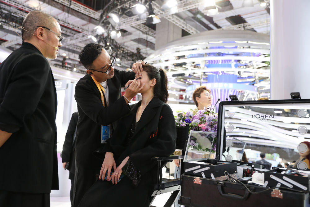 2025年11月7日,觀眾在第八屆進博會消費品展區(qū)歐萊雅展臺體驗美妝服務(wù)。歐萊雅是進博會八屆“全勤生”。本屆進博會共有170家企業(yè)和27家機構(gòu)成為簽約參展的八年“全勤生”,進博會“全勤生”們的參會熱情印證了中國持續(xù)推動高水平對外開放的堅定姿態(tài),也彰顯了中國為各國企業(yè)提供共享中國市場寶貴機遇的誠意。