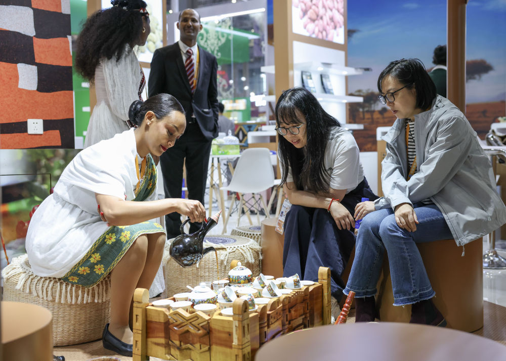 2025年11月7日,人們在第八屆進博會國家展埃塞俄比亞館品嘗咖啡。本屆進博會上,共有來自123個共建“一帶一路”國家的企業(yè)參展,同比增長23.1%;來自最不發(fā)達國家的企業(yè)達163家,同比增長23.5%。自首屆起,進博會便為最不發(fā)達國家提供免費標準展位。本屆進博會首次為最不發(fā)達國家產(chǎn)品打造專區(qū),擴容非洲產(chǎn)品專區(qū),支持非洲建交國用足用好100%稅目產(chǎn)品零關(guān)稅政策,非洲企業(yè)參展數(shù)量同比增長80%。