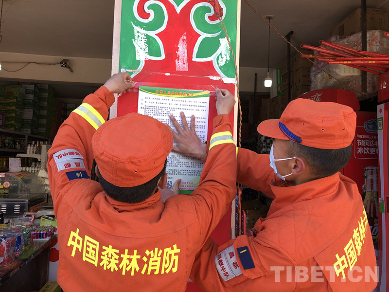 西藏森林消防總隊在西藏自治區6市17縣采取防火宣傳小分隊進社區、進林區、進企業、進村莊、進農戶的“五進”形式,以重點林區、人員密集區為重點,以宣傳強意識、設卡堵火種、檢查除隱患、遇火早撲滅為任務在重點地段、重要林區、景區、入山路口懸掛防火標語、設置火源檢查站。出動100余名指戰員深入重點林區、景區實施靠前駐防,通過向過往群眾、游客講解森林火災常識、體驗滅火裝備等方式,做好節日期間森林防火工作。
