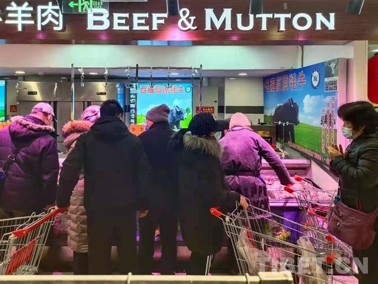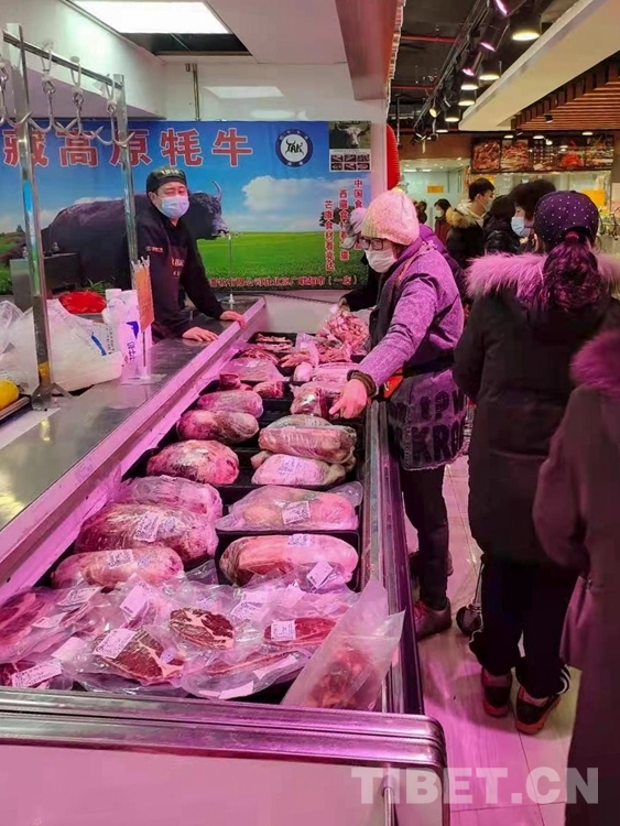 中國西藏網(wǎng)訊 近日,北京廣聯(lián)連鎖超市冷鮮肉柜臺(tái)前,購買牛肉的市民正在認(rèn)真選購來自西藏昌都市芒康縣的高原牦牛肉。
