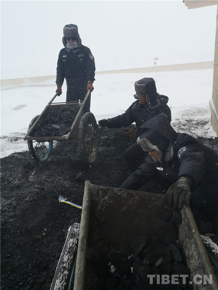 鍋爐房是取暖必備,他們將通往鍋爐房的道路疏通,同時將煤池里的煤及時挖出來,再將太陽能板上的積雪清掉,保障單位當天的取暖用電,接著用了接近一周的時間清理出一條通往單位的路,因為他們還在等著年貨。