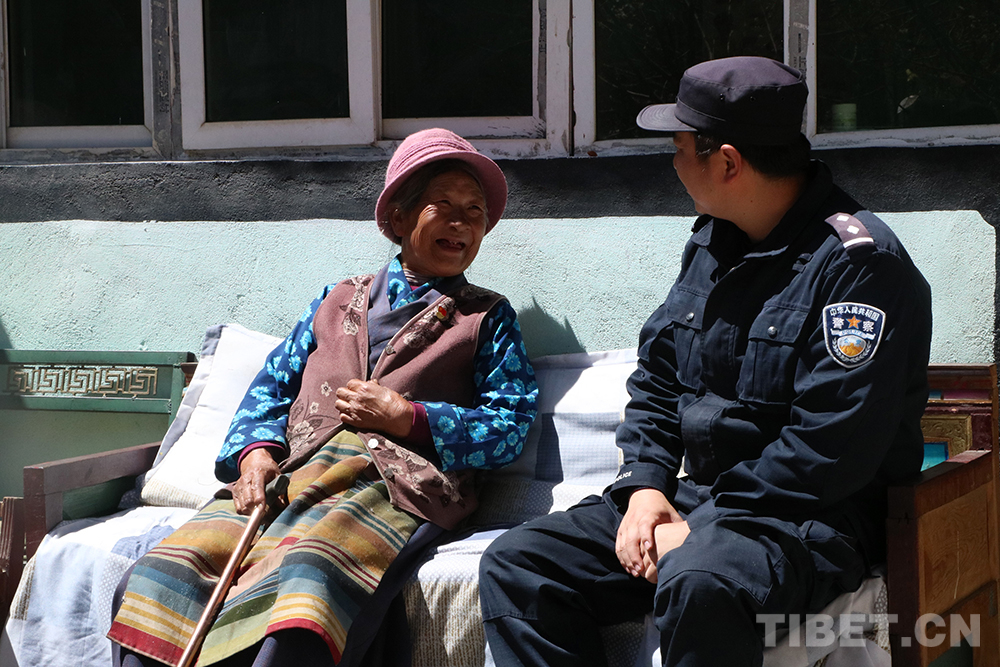 民警來(lái)到拉姆老阿媽的家中,急忙推開(kāi)門喊道:“老阿媽,我們來(lái)了,您先躺一會(huì)兒,衛(wèi)生院的醫(yī)生馬上來(lái)……”一抬頭卻看到老阿媽坐在板凳上看著民警們微笑起來(lái)。