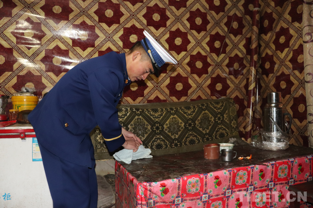 伴隨著冬日里溫暖的陽光,中隊指戰員代表帶著慰問品和節日的祝福來到了卓給阿媽家中,阿媽高興地迎接大家。指戰員們為阿媽張貼對聯、整理衣物、收拾衛生,給阿媽測量血壓,與阿媽拉家常,小屋沉浸在溫馨祥和的氛圍中。阿媽拉著指戰員的手說道:“謝謝你們經常來看我,我雖然沒有兒女,有你們的掛念,心里很滿足。”臨走時,指戰員再三叮囑阿媽有困難一定要及時聯系,她的“兒子”會經常來看望。