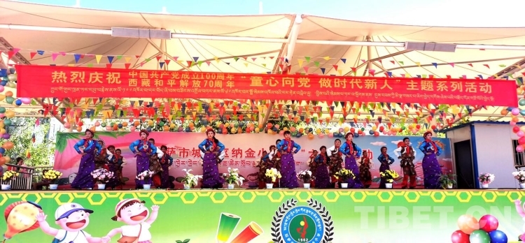 中國西藏網訊 6月1日,西藏自治區拉薩市城關區納金小學“童心向黨、做時代新人”六一兒童節活動在該校操場舉行。