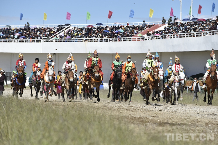 圖為那曲市2020羌塘恰青格薩爾賽馬藝術(shù)節(jié)場內(nèi)速度賽馬比賽現(xiàn)場,少年們策馬而行(資料圖)