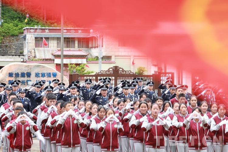 在西藏自治區日喀則市亞東縣上亞東鄉三崗村廣場,隨著《我愛你中國》伴奏音樂響起,嘹亮的歌聲在人群中穿梭、動聽的旋律在山谷間回蕩,引來大批群眾駐足觀看并自發步入演唱行列中,與民警們齊聲合唱。