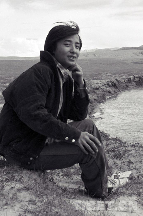 這是原文部辦事處(現尼瑪縣)機要科陳杰在小鎮旁河邊請記者為他拍照留念,以寄回家鄉免父母擔憂(唐召明1987年攝)