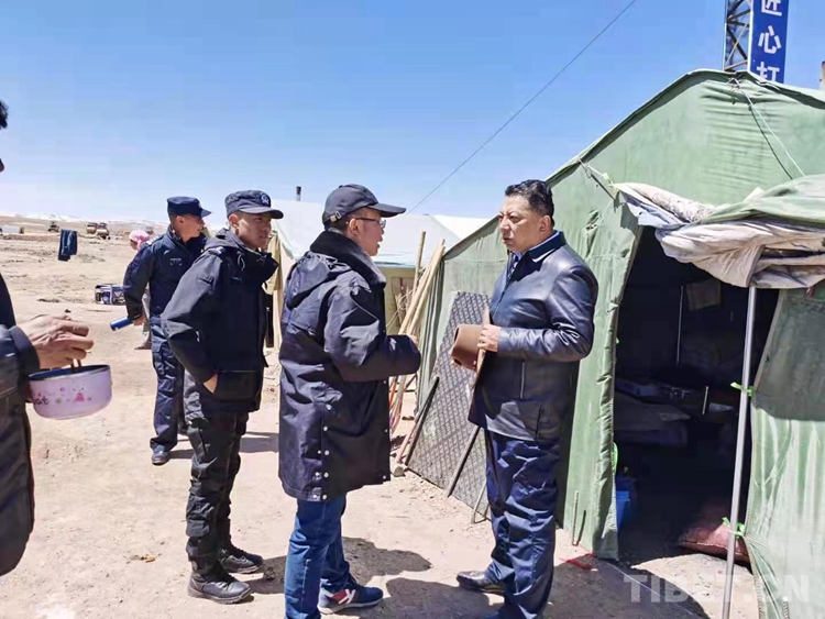 圖為麻多鄉黨委書記(右一)在源頭保護站調研生態狀況 攝影:才仁當智