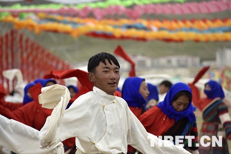 圖為7月25日,班戈縣第七屆納木錯(cuò)文化旅游民俗風(fēng)情賽馬藝術(shù)節(jié)開幕式上的文藝表演 攝影:王媛媛