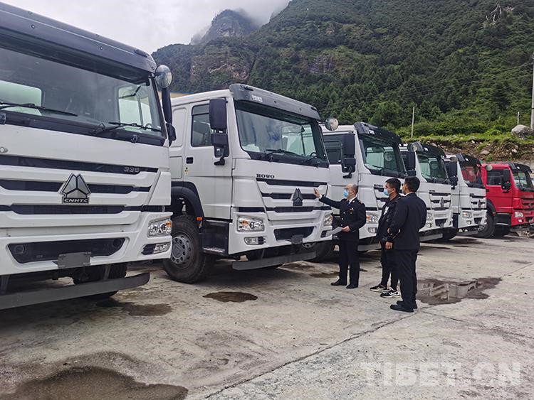 圖為拉薩海關關員監管出口車輛 圖片由拉薩海關提供