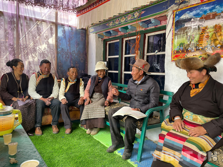 小到家庭糾紛,大到村民大會,都會有索朗頓珠宣講普及法律法規和惠民政策的影子,因為作為一名共產黨員,他認為有責任和義務向群眾宣傳現在的富足生活都要歸功于中國共產黨。
