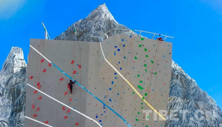 儀式上,來自各地的攀登愛好者參觀了珠峰登山展館,觀看了攀巖表演。日喀則市重點業余體校的80余名學生體驗了攀登運動帶來的刺激和快樂。