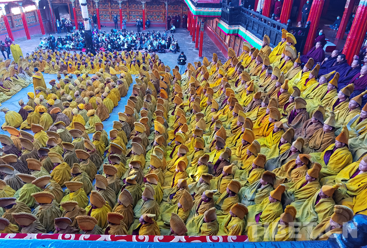 27日(藏歷9月22日),扎什倫布寺舉行祝賀班禪獲得嘎欽學位吉祥祈愿法會。班禪向在場所有僧眾摸頂賜福,并與僧眾集體誦經,回向祈福饒益眾生、法務昌隆、國泰民安、風調雨順。