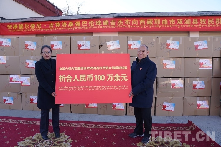 為表達對基層牧民群眾的體恤和關心,進一步提高基層牧民群眾的獲得感、幸福感,班禪決定以個人名義向雙湖縣從事牧業生產的牧民捐贈2000件防寒衣物。12月6日,在日喀則市德慶·格桑頗章院內舉行了捐贈儀式,將這批防寒衣物交至雙湖縣。
