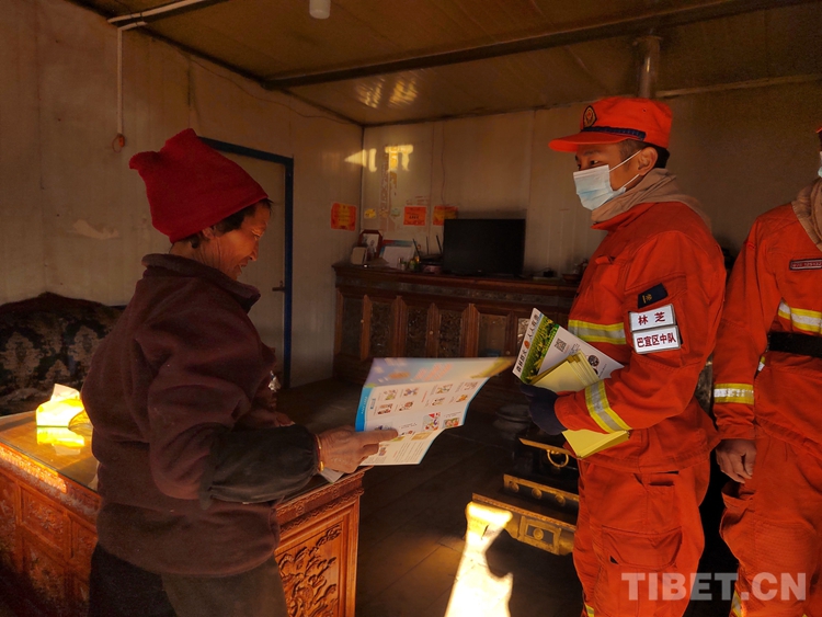圖為巴宜區中隊指戰員為駐地群眾普及防火知識