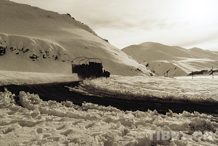 這是藏北高原發生特大雪災后,那曲地區(現那曲市)新搶修通的鄉村公路(唐召明1990年攝)