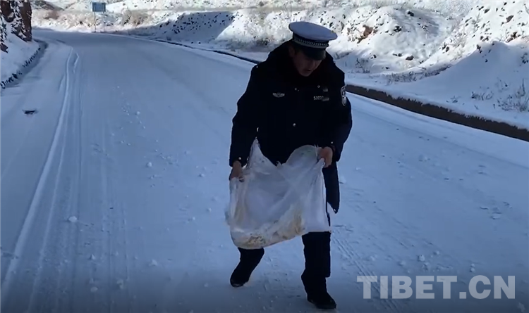 2018年3月,國道317突然遭遇了暴雪天氣,許多群眾和車輛被困在了矮拉山山頂,扎西四郎跟著隊友們在零下三十多度的惡劣環境下堅守了28天。令扎西四郎印象最深刻的是有一次,因為車子沒辦法通行,隊長指揮民警帶群眾下山。當時,有一位要去拉薩的老奶奶腿腳不方便,她自己根本就沒辦法走動,扎西四郎就和桑珠一起輪流背著老人下山,雖然中間滑倒了幾次,可還是把老人背到了能通車的安全位置,老人為了表達感激,還專門給他們留下了拉薩的住址和聯系電話。
