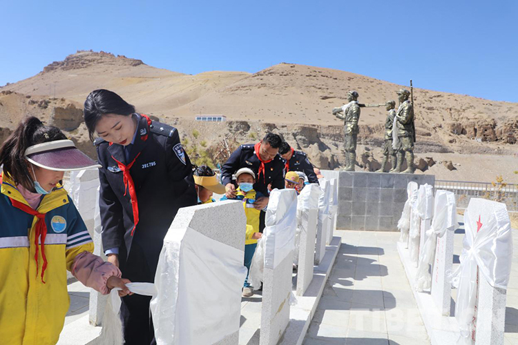 中國(guó)西藏網(wǎng)訊 青松翠柏守英烈,春風(fēng)百花寄哀思。在清明節(jié)來(lái)臨之際,為傳承英烈遺志,弘揚(yáng)英烈精神,4月2日,西藏普蘭出入境邊防檢查站民警與普蘭縣九年一貫制學(xué)校少先隊(duì)員們一起來(lái)到普蘭縣烈士陵園開展“清明祭英烈”活動(dòng)。