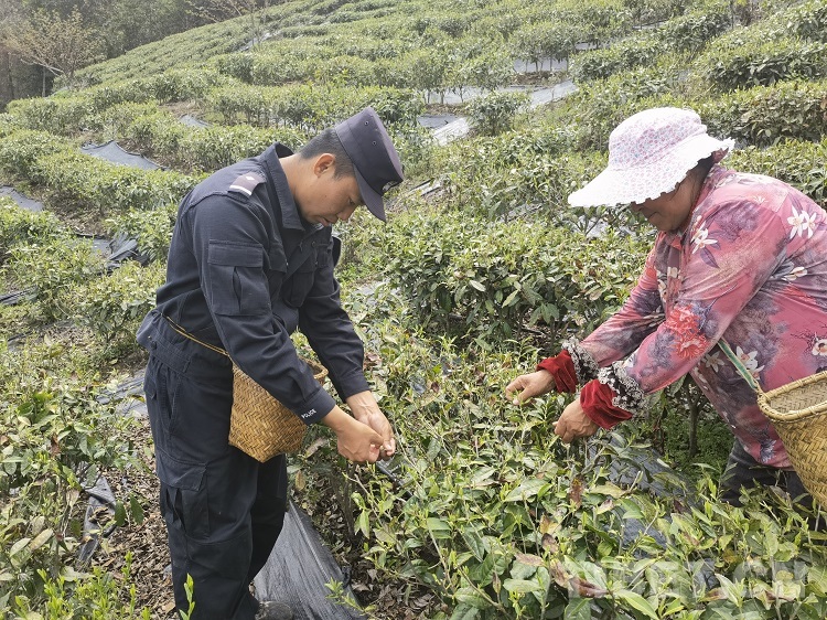 “純手工采茶采摘芽葉比較均勻,茶葉的品質也比較好,這也導致需要大量人力手工采摘,每年我們派出所都會通過開展‘助農春耕’活動,幫助轄區人手不足的農戶采摘茶葉?!北潮肋吘撑沙鏊窬钪艺f。
