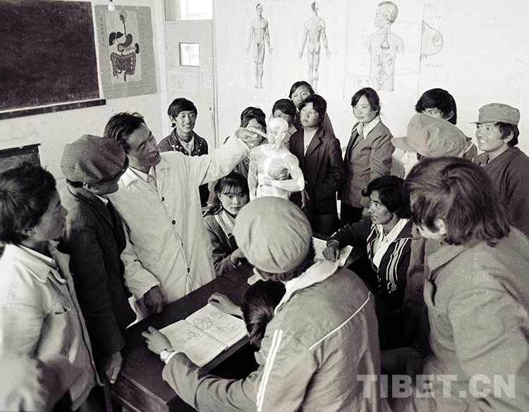 這是西藏那曲地區(現那曲市)中專衛生班老師在給學生上課(唐召明1985年攝)