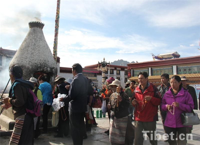 圖為在西藏拉薩大昭寺前煨桑、轉經、朝佛的信教群眾 攝影:馬靜