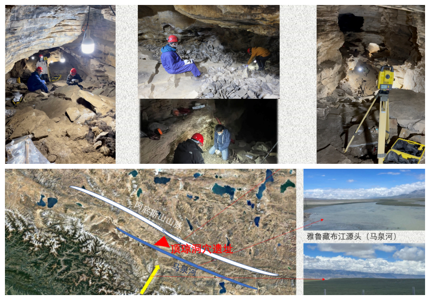 圖為西藏自治區頂瓊洞穴遺址位置示意圖及考古現場情況 圖片來源:西藏自治區文物保護研究所赤列次仁