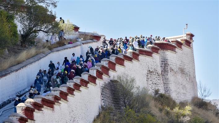 圖為布達拉宮一年一度的粉刷“美顏”時刻 圖片來源:西藏日報