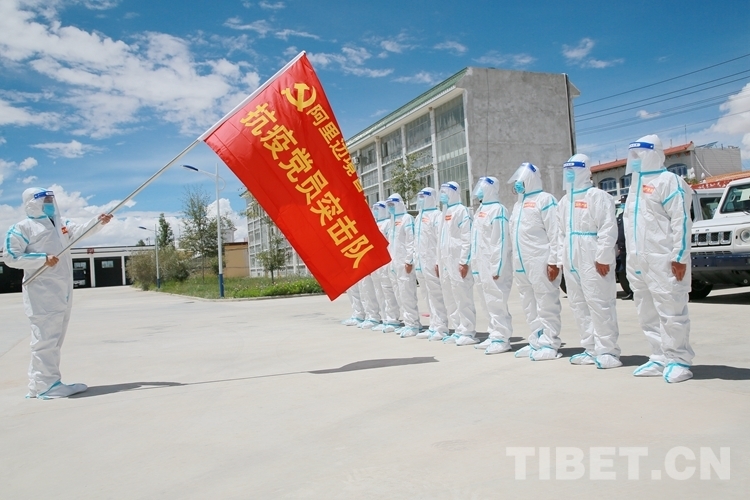 圖為阿里邊境管理支隊“抗疫黨員突擊隊”揮旗出發 攝影:張拴根