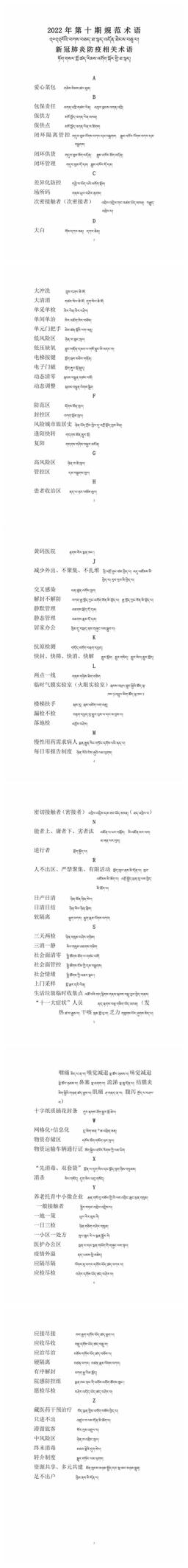 據(jù)了解,為使專(zhuān)業(yè)術(shù)語(yǔ)譯文更加精準(zhǔn)規(guī)范,通俗易懂,做到統(tǒng)一標(biāo)準(zhǔn),西藏自治區(qū)藏語(yǔ)委辦(編譯局)本著表意準(zhǔn)確、概念清晰、通俗易懂的原則,最終審定通過(guò)新冠肺炎防疫方面的術(shù)語(yǔ)和短語(yǔ)91條。