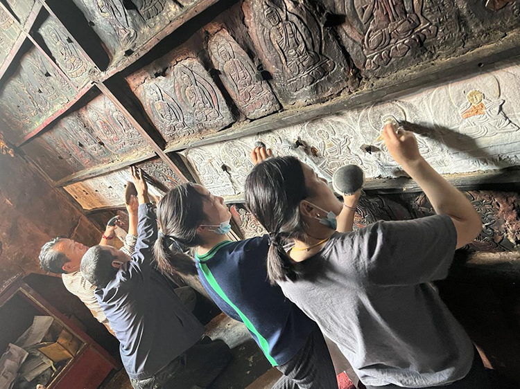 圖為日喀則市石刻藝術博物館工作人員開展石刻文物拓印工作 圖片來源:日喀則市文化局官網