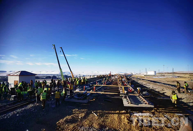 中國西藏網(wǎng)訊 10月30日9時(shí),青藏鐵路那曲車站人頭攢動(dòng)、機(jī)械轟鳴,500多名建設(shè)者在海拔4500多米的高原上,對車站的道岔進(jìn)行更換。16時(shí),那曲站使用16年的7組道岔全部更換完畢。至此,自6月30日開工、歷時(shí)123天,青藏鐵路格爾木至拉薩段全線32個(gè)車站126組道岔更換、56個(gè)車站信號系統(tǒng)改造任務(wù)順利完工,青藏鐵路格拉段道岔更換和信號系統(tǒng)改造主體工程全面完成。