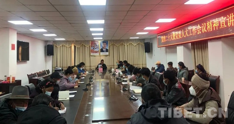 圖為洛扎縣人大系統干部、基層人大代表,部分市、縣、鄉級人大代表、群眾代表學習黨的二十大精神