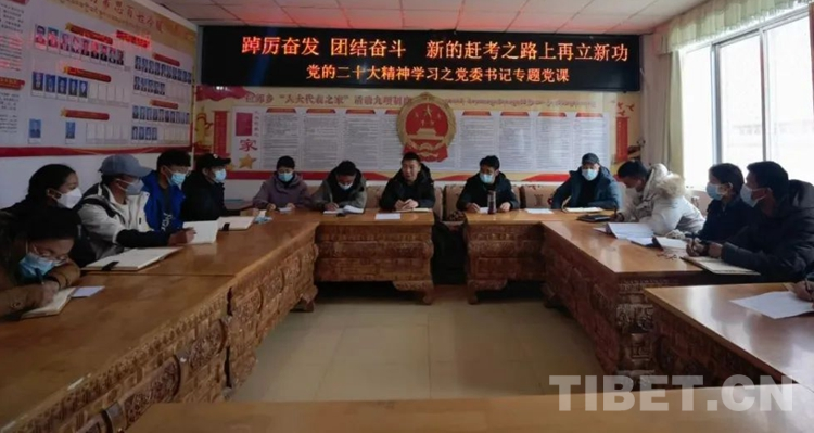 圖為洛扎縣拉郊鄉開展題為“踔厲奮發團結奮斗,新的趕考之路上再立新功”的黨的二十大精神學習之黨委書記講黨課活動。