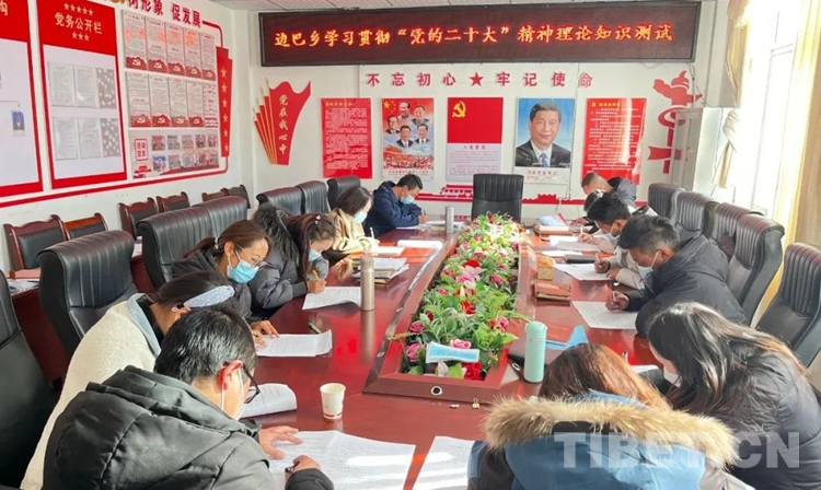 圖為洛扎縣邊巴鄉黨委理論學習中心組學習貫徹黨的二十大精神并進行黨的二十大精神理論知識測試。(中國西藏網 記者/賈華加 圖片來源:洛扎縣宣傳部)
