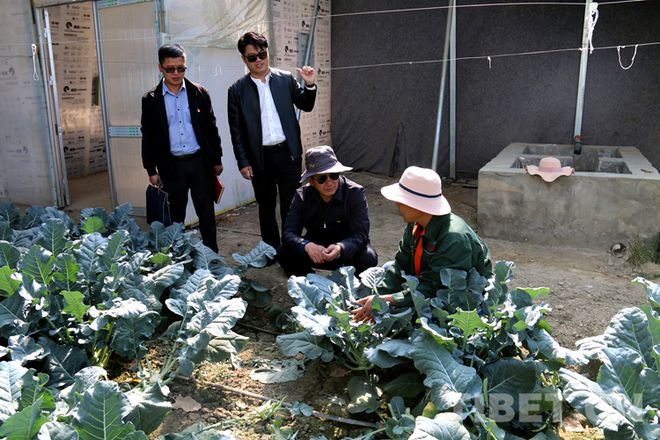 圖為次仁頓珠(右二)到農戶家中了解溫室菜棚經營情況 圖片由受訪者提供