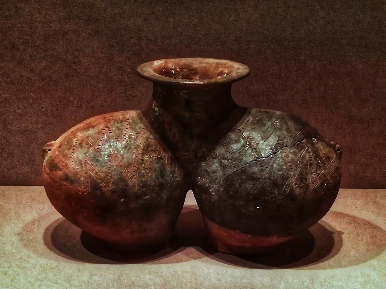 圖為西藏自治區昌都市卡若遺址出土的雙體陶罐 攝影:李元梅
