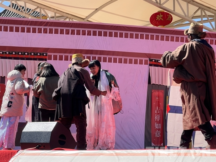 圖為當地群眾為青年歌手黃齡獻哈達 攝影:次旦拉姆