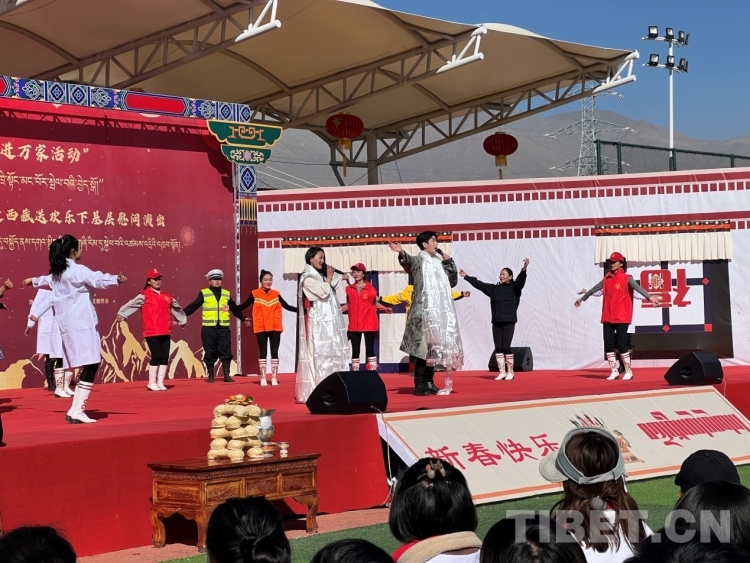 中國西藏網訊 正值早春二月,藏歷水兔新年即將到來。2月19日上午11:30,由中國文學藝術界聯合會、中國電影家協會、西藏自治區黨委宣傳部聯合主辦的“我們的中國夢——文化進萬家”送歡樂下基層慰問演出活動在西藏自治區拉薩市堆龍德慶區濱河體育公園舉行。