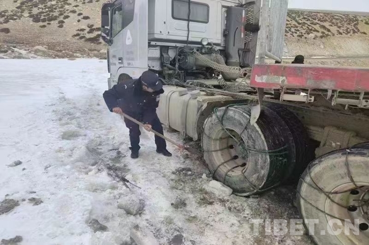 西藏阿里:半掛車夜陷雪地 移民警察助脫困