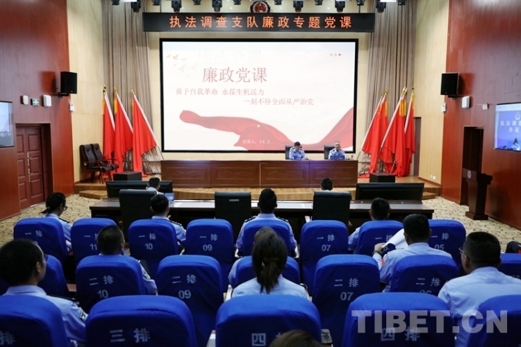 圖為西藏邊檢總站執法調查支隊黨委副書記、政治委員為全體民警講授廉政專題黨課 攝影:仁青旺堆