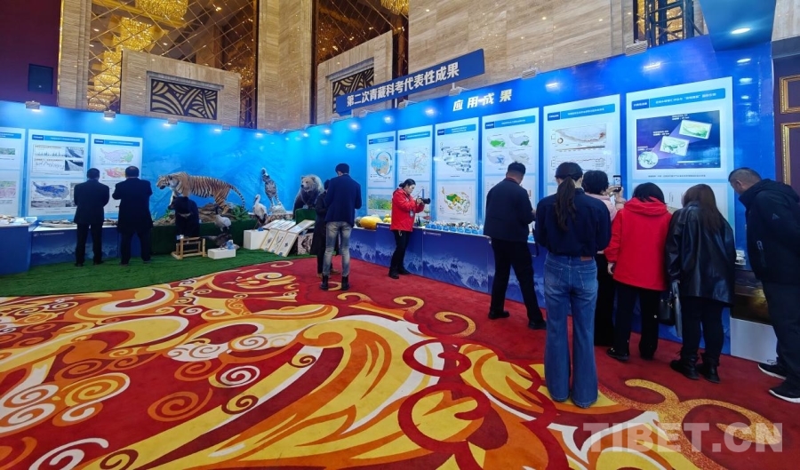 圖為第二次青藏科考成果綜合集成應用發布會現場參會人員參觀第二次青藏科考成果展覽 攝影:次旦拉姆