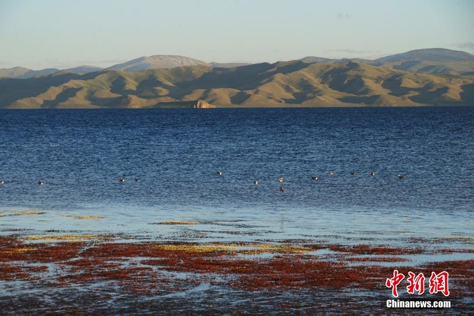 冬格措納湖位于青海省果洛藏族自治州瑪多縣,是一片地處海拔4100多米的淡水湖。夏日的冬格措納湖,湖水湛藍(lán),宛如跌落群山之中的“藍(lán)寶石”。紅、黃、綠色的草灘與湖水相互映襯,美景如畫。圖為冬格措納湖美景如畫。 馬銘言 攝