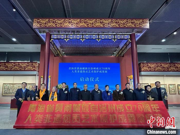 青海省黃南藏族自治州成立七十周年·人類非遺熱貢藝術保護成果展,27日在中國工藝美術館·中國非物質文化遺產館正式開幕。