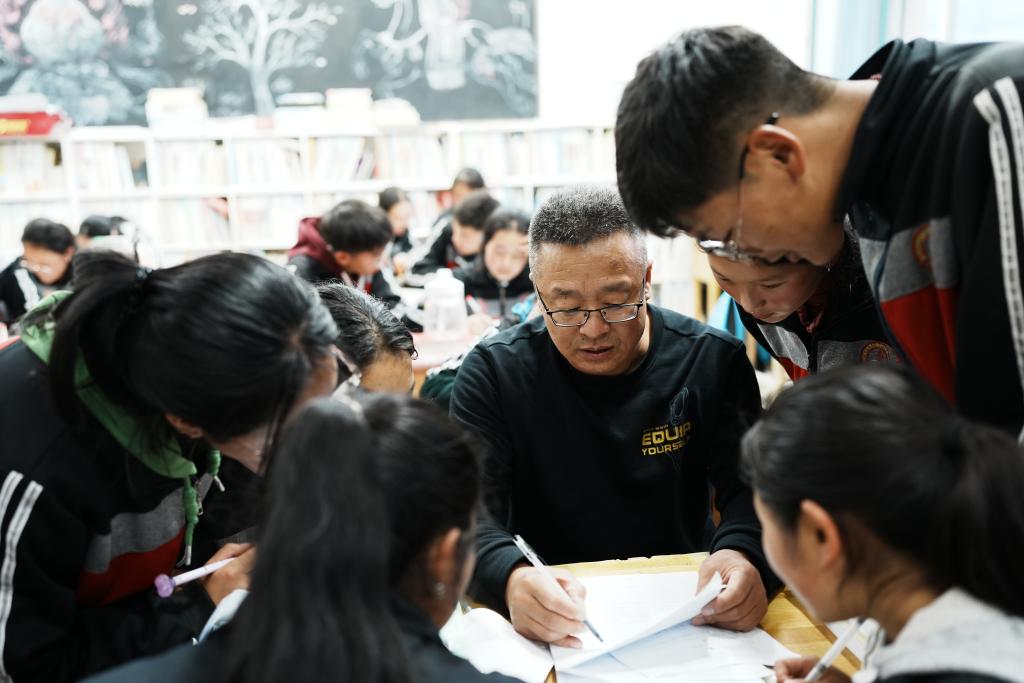 2024年3月,姜偉在給學生輔導數學題。(受訪者供圖)