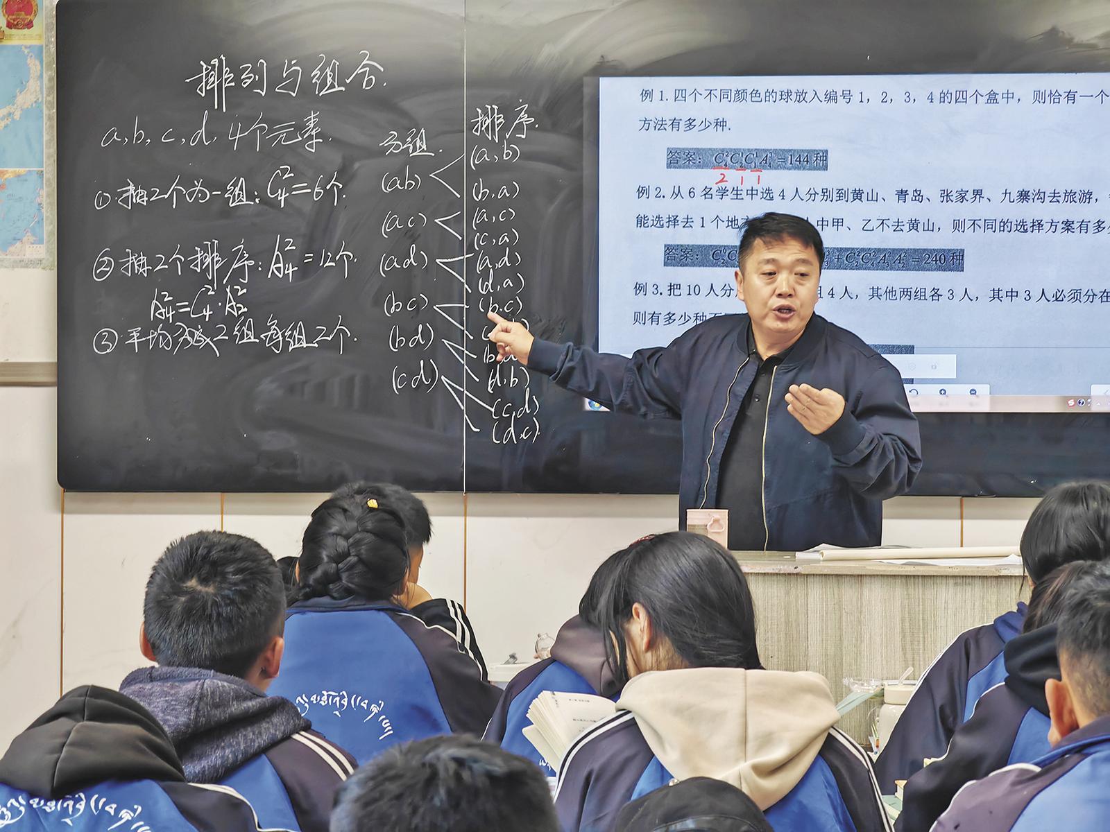 2023年5月,孫鳳軍主動請纓踏上海拔4000米的玉樹高原,展開自己的援青支教生涯。初到玉樹州第四民族高級中學,孫鳳軍直觀感受到,北京援建的校舍靜美安然、教育硬件資源與其他省市差距不大,但軟件資源相對薄弱單一,學生手中只有“人教版”的數學課本,對高中數學知識的掌握程度停留在基礎層面,題型見得少、解題思維僵化,高考平均數學成績長年徘徊在及格線以下。