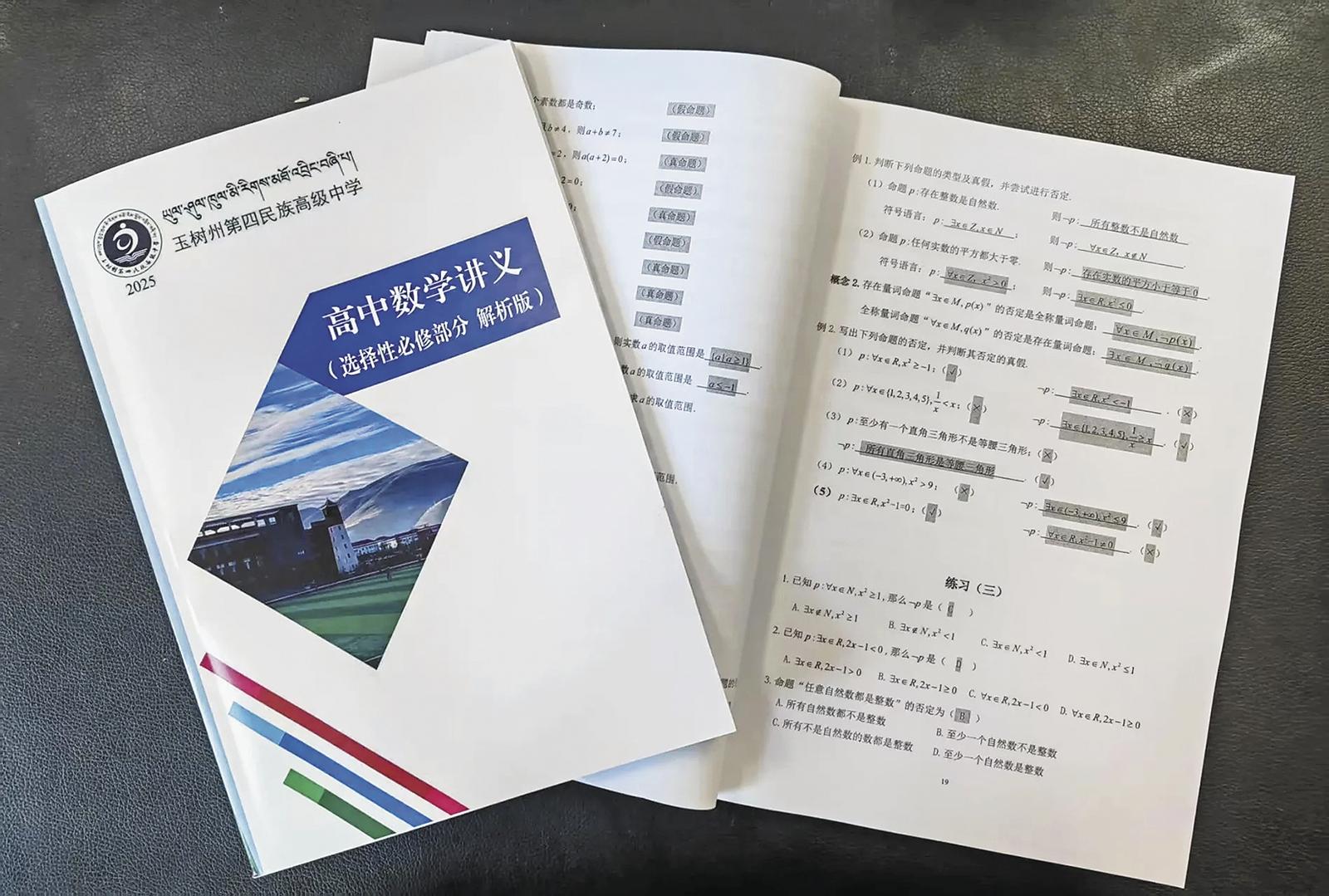 6月16日,在青海省玉樹藏族自治州第四民族高級中學高二7班的教室內,孩子們每個人手里拿著一本《高中數學講義(必修部分)解析版》認真翻看。