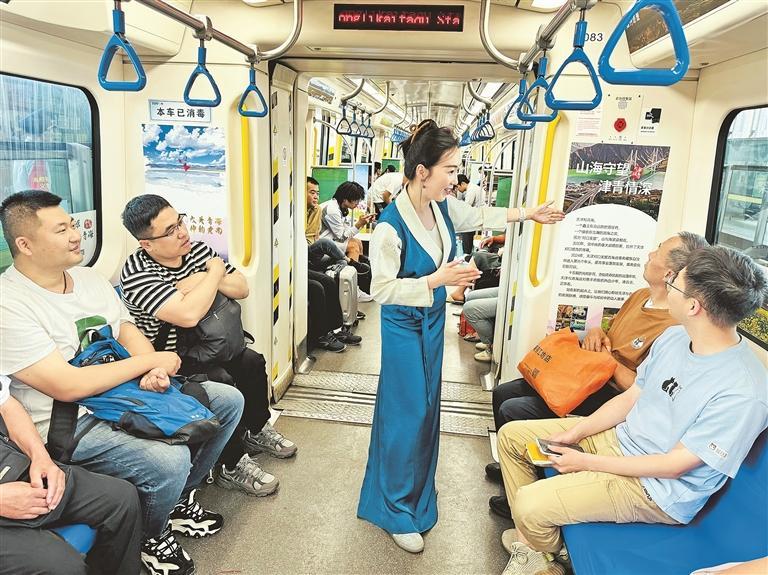“坐著地鐵游青?!被顒?dòng)在天津地鐵9號(hào)線市民廣場站再次啟程出發(fā)。郭靚 攝