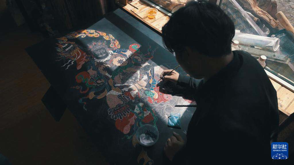 “漆畫的表現是自由的、包容的,可以實現唐卡想要的多種效果!”隨著學習深入,仁青郎加對唐卡漆畫的理解更深了一分。