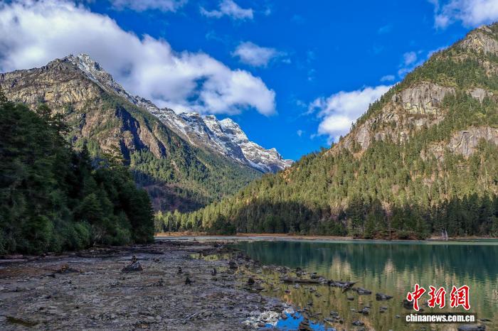 圖為11月9日,西藏自治區林芝市工布江達縣錯高鄉羅池村周邊的原始森林和雪山。江飛波 攝